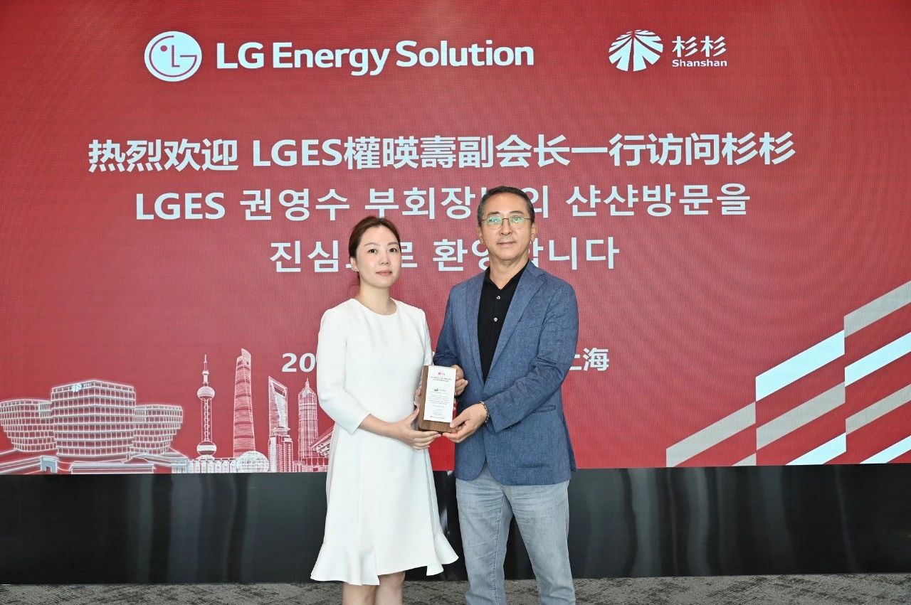會(huì)后,權(quán)暎壽為杉杉科技頒發(fā)LG2023年優(yōu)秀合作伙伴獎(jiǎng),以感謝杉杉科技及團(tuán)隊(duì)對LGES發(fā)展作出的貢獻(xiàn)。