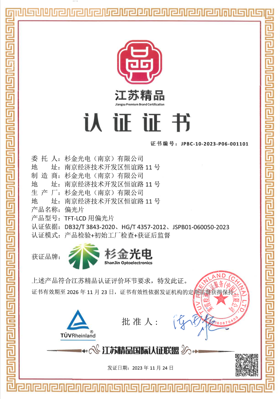 近日,杉金光電成功榮獲“江蘇精品”認(rèn)證,這是對(duì)公司在偏光片領(lǐng)域卓越品質(zhì)和持續(xù)創(chuàng)新的充分肯定。